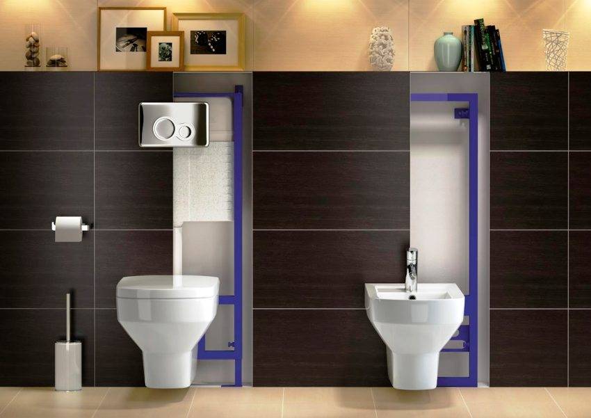 Главным преимуществом инсталляции для унитаза этого вида является возможность монтажа в любом месте санузла, куда можно подвести канализационный трубопровод и трубу водоснабжения. Рамные системы различаются между собой по предназначению. Есть варианты, подходящие только для биде либо унитаза, а также есть модели, которые устанавливаются с разными типами сантехнических приборов.