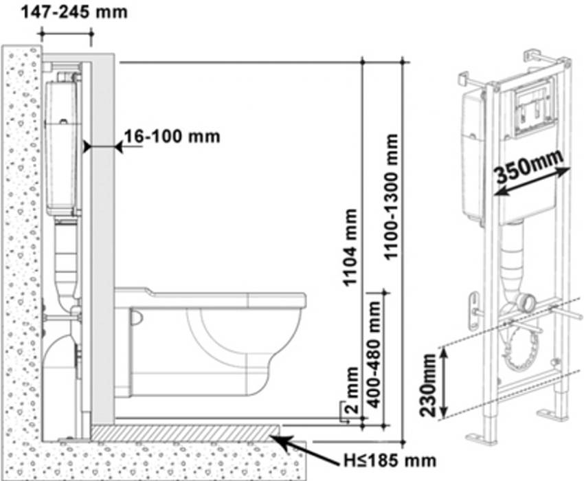 Как выбрать инсталляцию для подвесного унитаза, чтобы ее размеры подошли для конкретного помещения