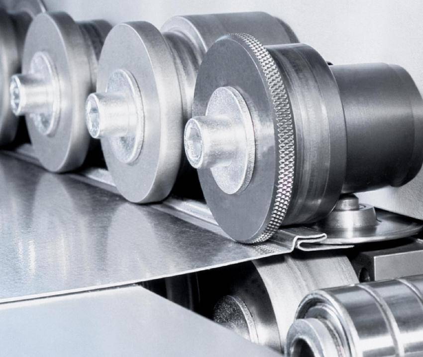 На прокатных роликах производится последовательный обжим трубы. Образуются выступающие ребра, а сварной шов остается внутри слоя, смещенного к центру.