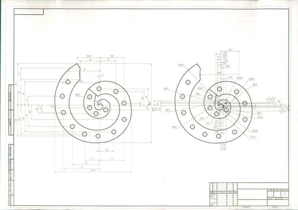 Чтобы более точно получилась разметка, лучше всего пользоваться миллиметровой бумагой. Нарисуйте на ней спираль, у которой постепенно увеличивается радиус витков. Между витками нужно соблюдать одинаковый шаг. Нужно сказать, что это условие необходимо соблюдать только в случаях, если нужна симметричность узоров, как правило, делают не более 4 шт.