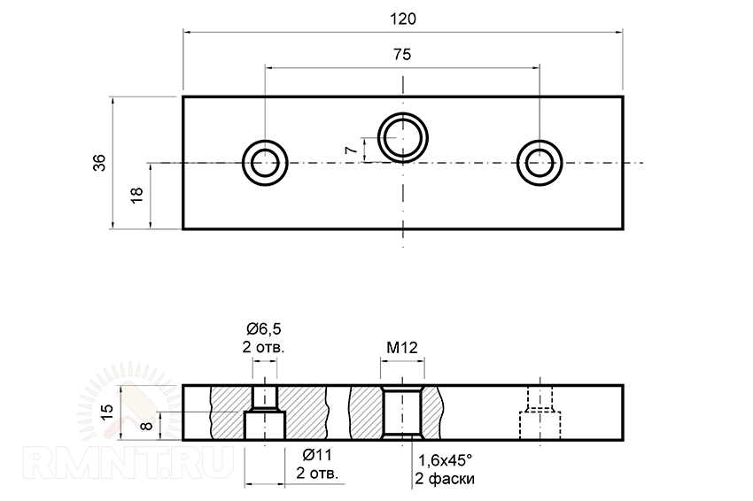 Чтобы смасштабировать размеры, приводим чертёж нижней планки этого «Гнутика».