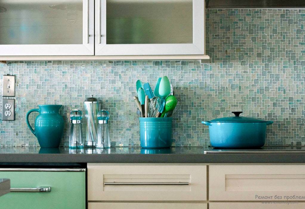 Кухонный рабочий фартук, облицованный стеклянной мозаикойИсточник terracotta.by
