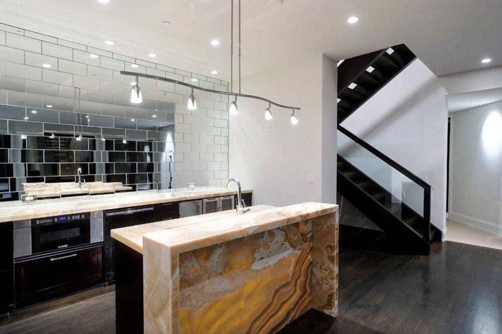 С другой стороны, подсветку вы можете установить и другим способом, например, просто приклеив светодиодную ленту или установив споты под шкафы как показано на фото ниже.