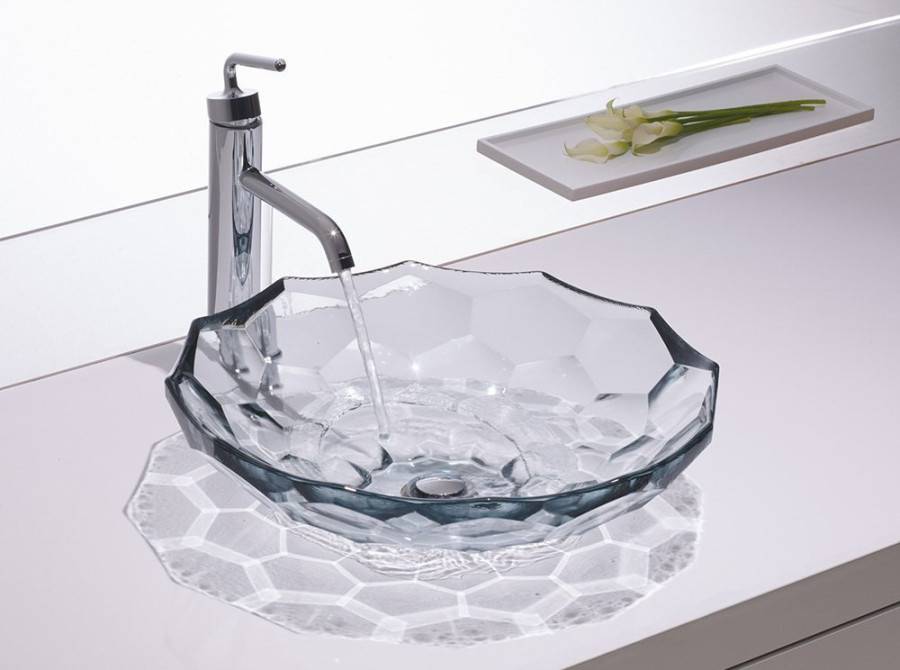 Стойкость. Не только высокие, но и низкие температуры, а также их резкий перепад не оказывают разрушительного воздействия на материал. Более того, стекло устойчиво и к воздействию агрессивных сред. Конечно, чистить раковину грубыми абразивами и металлическими щетками не стоит, а вот жидкие моющие средства и мягкая губка идеально подойдут для её полировки.