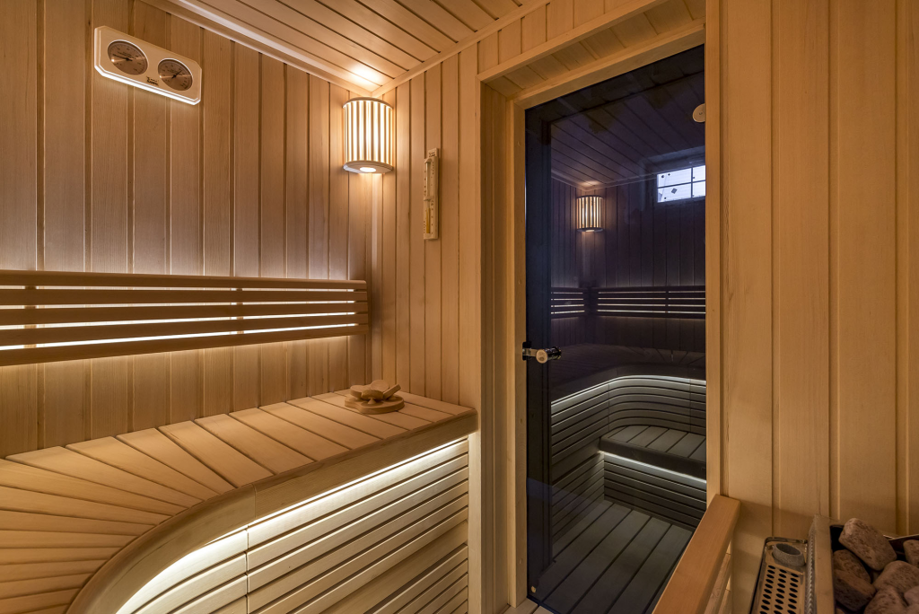 Стеклянная дверь пропускает достаточно света снаружи, что для парной может оказаться преимуществом — посидеть в полумраке в клубах горячего пара многим нравиться больше. К тому же, такая дверь гораздо проще поддается очистке, чем деревянная и на ней не заводится грибок.