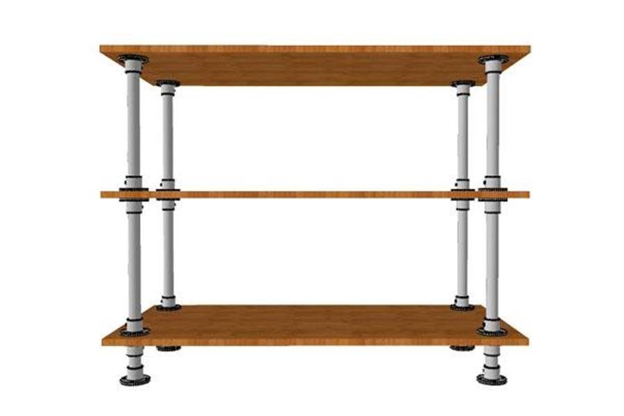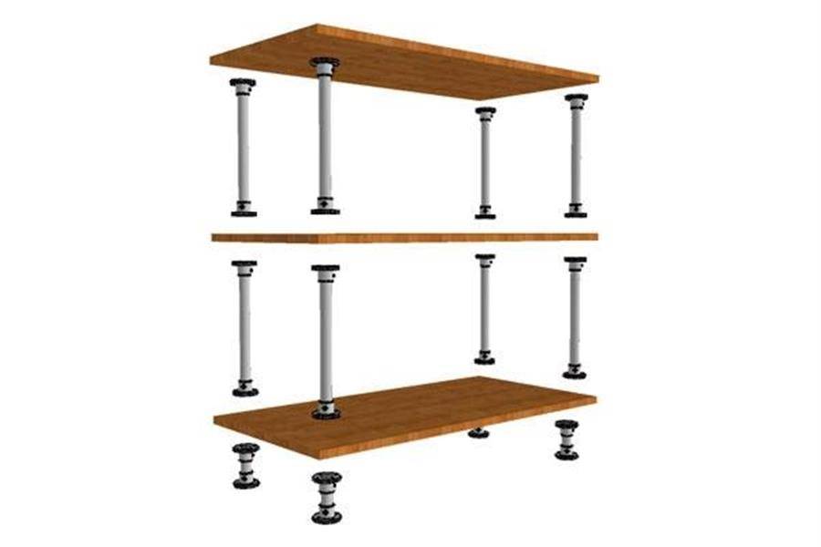 Затем устанавливаем стойки на деревянные полки и добавляем поочередно ярусы