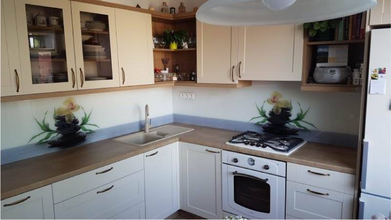 Единственной проблемой может оказаться рисунок, который может начать выцветать под воздействием солнечных лучей. Чтобы этого не произошло, необходимо заказывать рисунок, устойчивый к ультрафиолетовым лучам. Готовые панели этого материала фактически не приобретают, их делают на заказ под конкретную кухню.