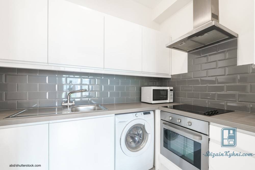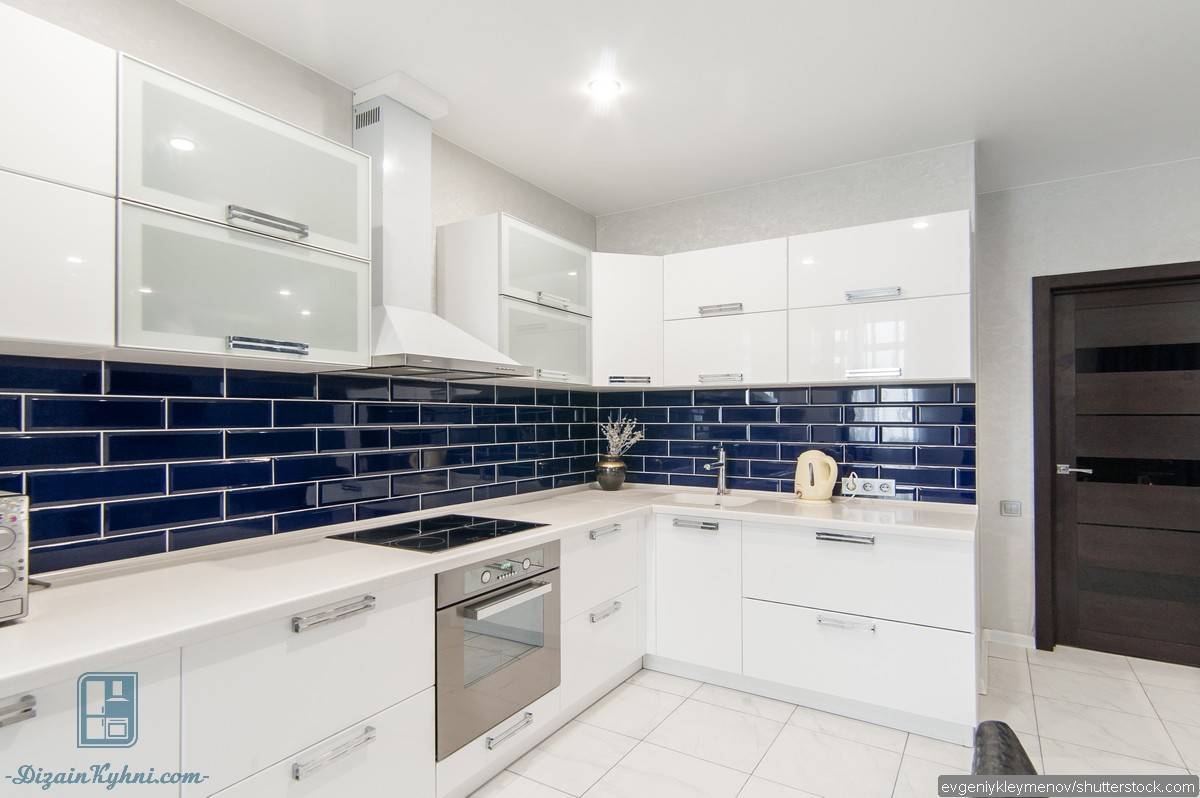 Для классического белого фартука используйте керамическую плитку. Более интересный вариант — имитация кирпичной стены, особенно если рабочая зона оборудована дополнительным освещением.