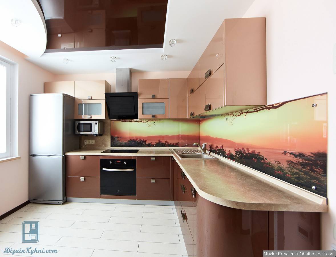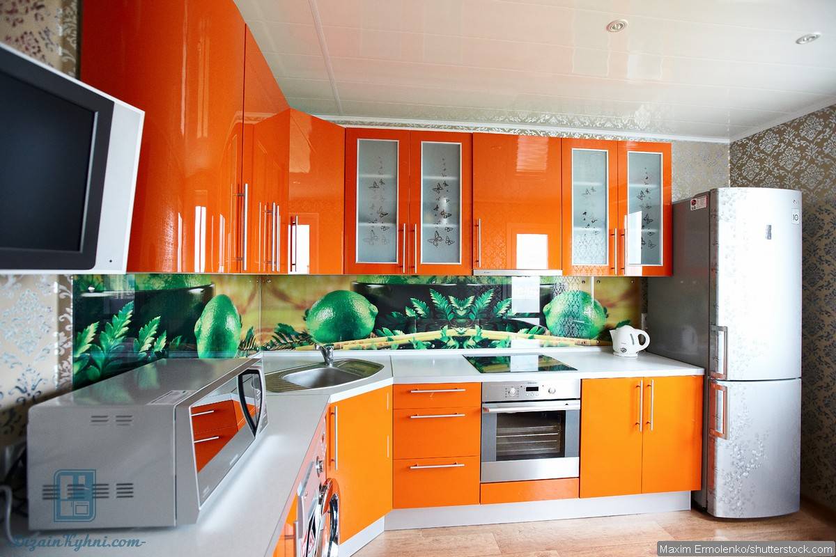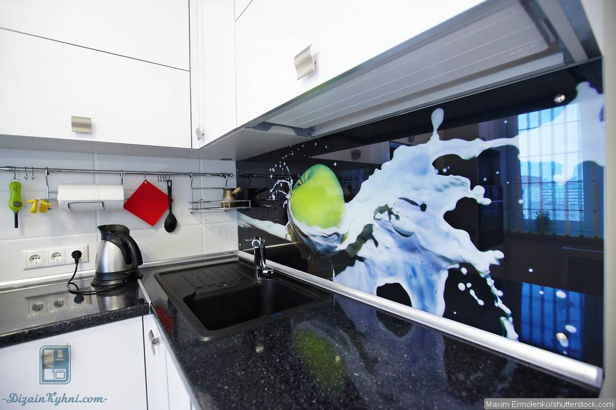 Дизайн: Фартук из акрилового стекла чаще всего оформляется фотопечатью, но также он может быть цветным (однотонным) или просто прозрачным.