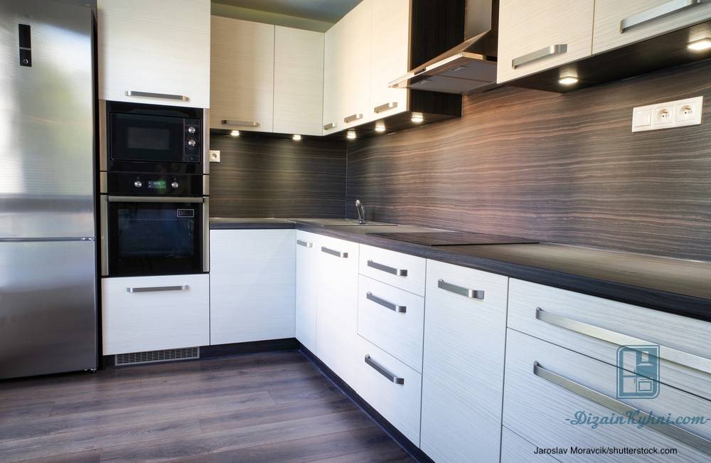 Может быть, вы хотите темную кухню, но размер комнаты этого не позволяет. В этом случае пусть базовый цвет будет белым, а фартук и рабочее пространство — черными. С таким решением вы сохраните ощущение пространства и удовлетворите свои потребности.