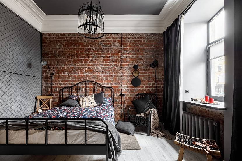 Спальня в стиле лофт в сдержанных тонахИсточник gazeta-pravo.ru