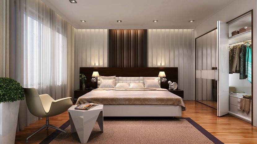 Просторная спальня в стиле минимализмИсточник ciscoexpo.ru