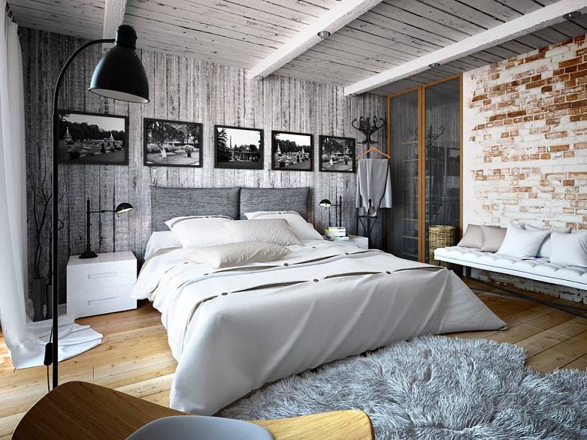 Спальня в стиле лофт в сдержанных тонахИсточник gazeta-pravo.ru