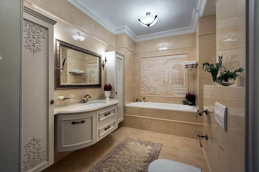 Классика никогда не выйдет из моды, каждый год данное направление приобретает новые черты. Современный дизайн ванной в 2022 году допускает сочетание элементов из неоклассики и барокко. В отделке преимущественно используют кремовые оттенки — они лучше всего подчеркивают элегантность и лаконичность интерьера. Не помешает доля строгости, которая прослеживается в изящных деталях.