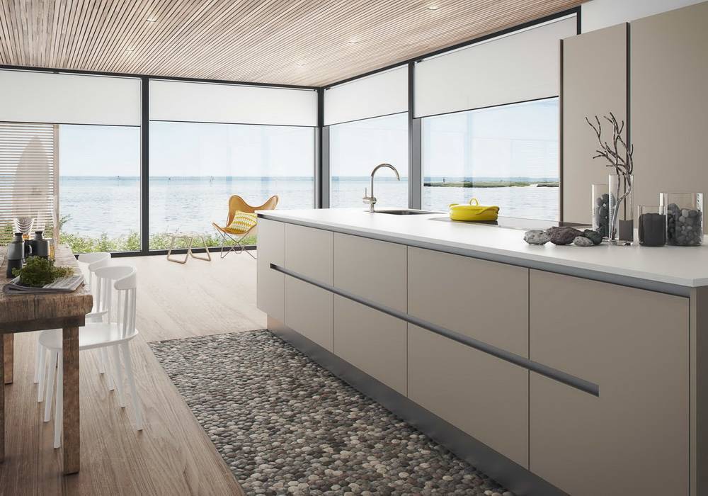 ⇒ Характерны оттенки кремовой и серой палитры. Выделяется преобладание прямых линий и лаконичных аксессуаров.