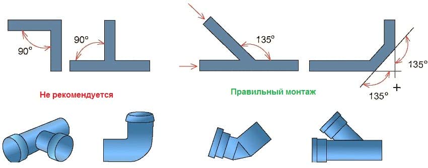 - обязательно выбрать угол наклона магистрали, – если он будет недостаточным, сток будет осуществляться медленно, а если наклон окажется слишком сильным, грязь не будет успевать стекать и осядет на стенках трубы;