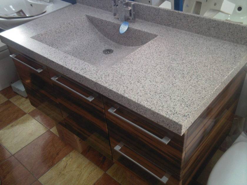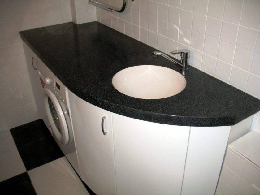 Но такие столешницы невозможно самим подогнать под выбранные размеры и формы раковины. За ними требуется основательной и постоянный уход. При больших нагрузках наблюдаются случаи сколов и глубоких повреждений, в результате чего возникает необходимость однозначной замены испорченной на новую.