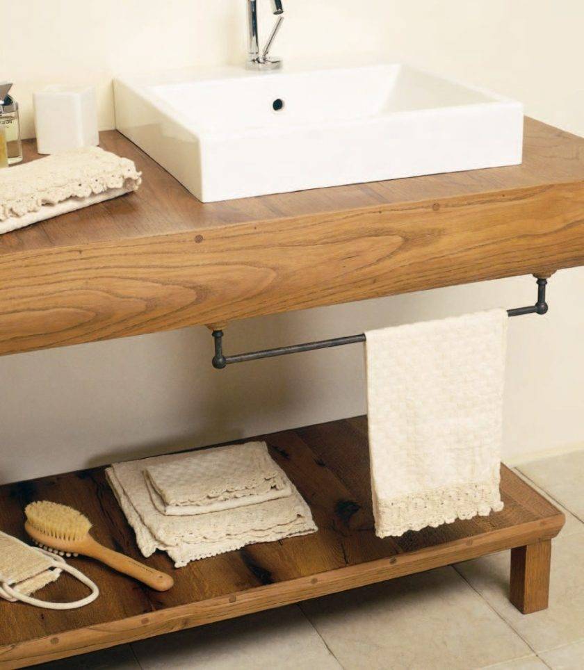 Натуральная столешница в ванную из дерева конечно является самым элитным типом изделия, которое не пользуется большой популярностью из-за высокой стоимости материала и технологии производства. Из натуральной древесины обычно изготавливаются элитные модели или эксклюзивные дизайнерские решения. Однако при желании, наличии нужного инструмента и знаний, можно сделать столешницу из дерева своими руками, это будет намного дешевле готового изделия из магазина.