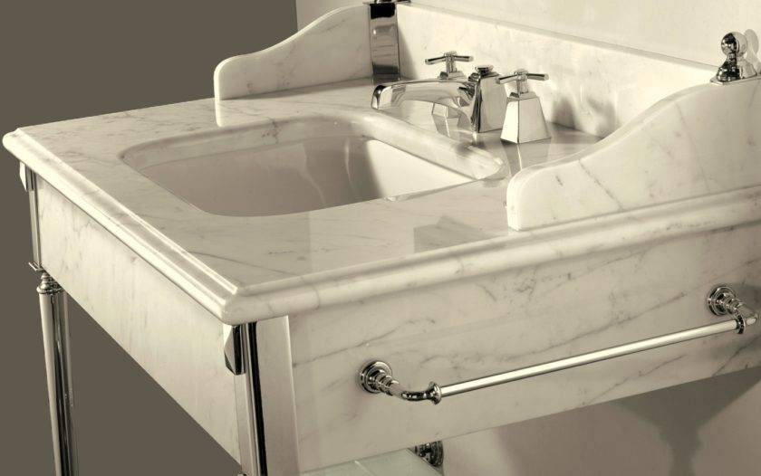 В большинстве своем такие столешницы изготовлены из мрамора с матовой или глянцевой поверхностью. К минусам таких столешниц относятся тяжеловесность конструкции.