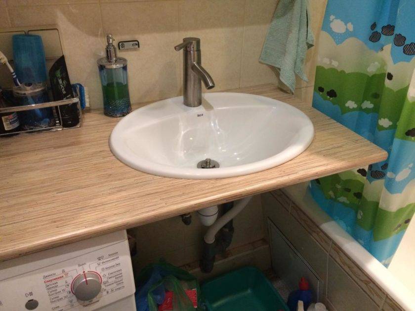 К столешницам под раковину в ванную комнату, изготовленным из прессованной стружки ил бумаги отношение очень скептичное. Однако современные технологии, в частности, покрытие ДСП и МДФ специальными защитными материалами, позволяют использовать конструкции из таких материалов в качестве столешницы под раковину в ванной.
