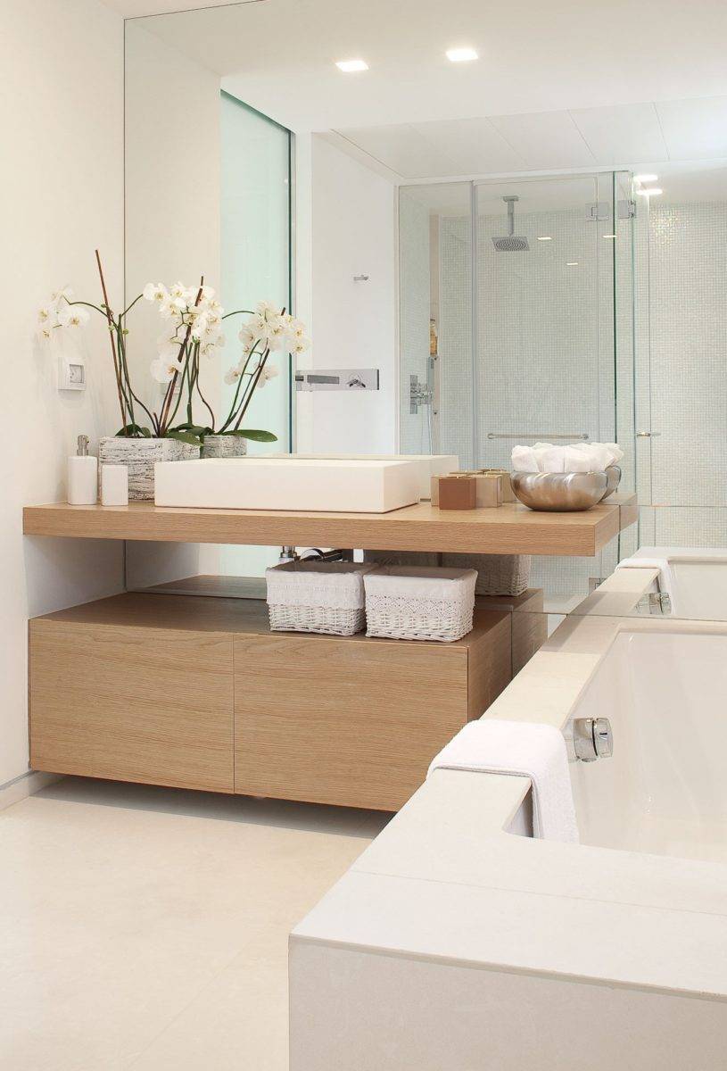 Ванные со столешницей всегда будет выглядеть ухоженно и аккуратно, что важно для каждого владельца комнаты