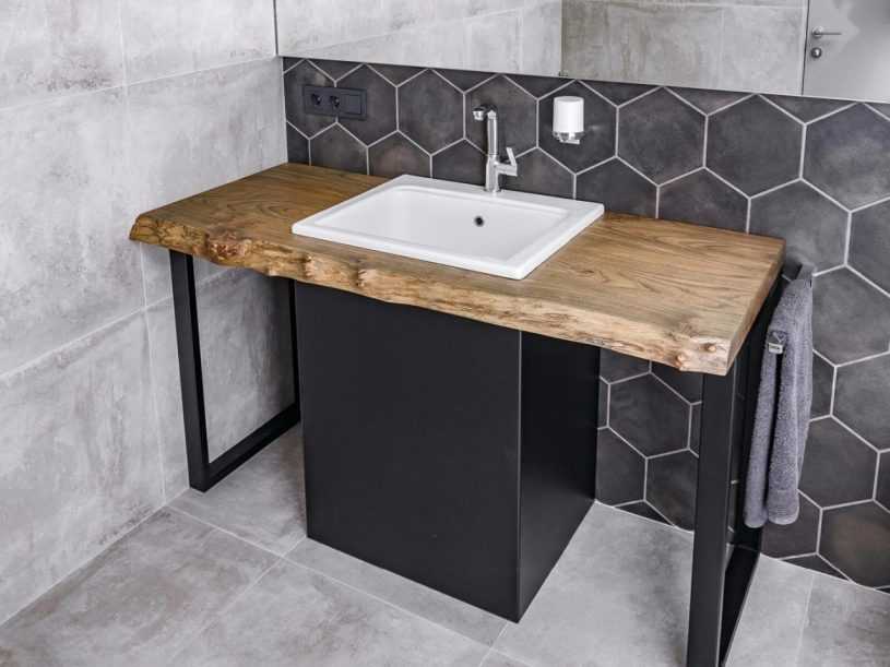 Удобство эксплуатации столешницы под раковину для ванной комнаты во многом зависит от основания, к которому она прикреплена