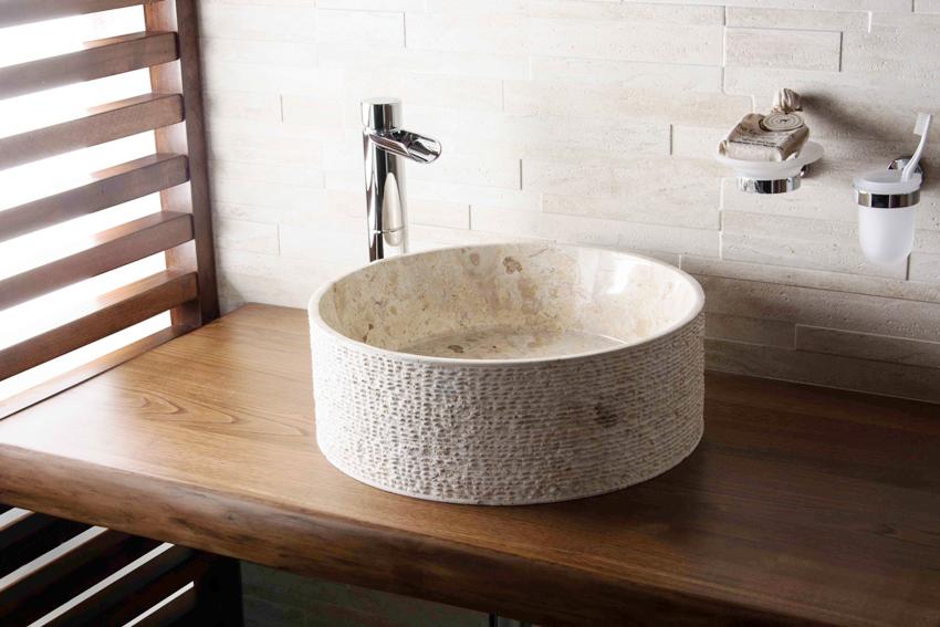 Умывальник устанавливается непосредственно в подготовленный проём, поэтому в таких ситуациях важно строгое соответствие размеров раковинной чаши. Как правило, проблем в быту не возникает, если диаметры чаши и отверстия правильно соотнесены между собой. Последний вариант столешницы – это модели для накладных раковин
