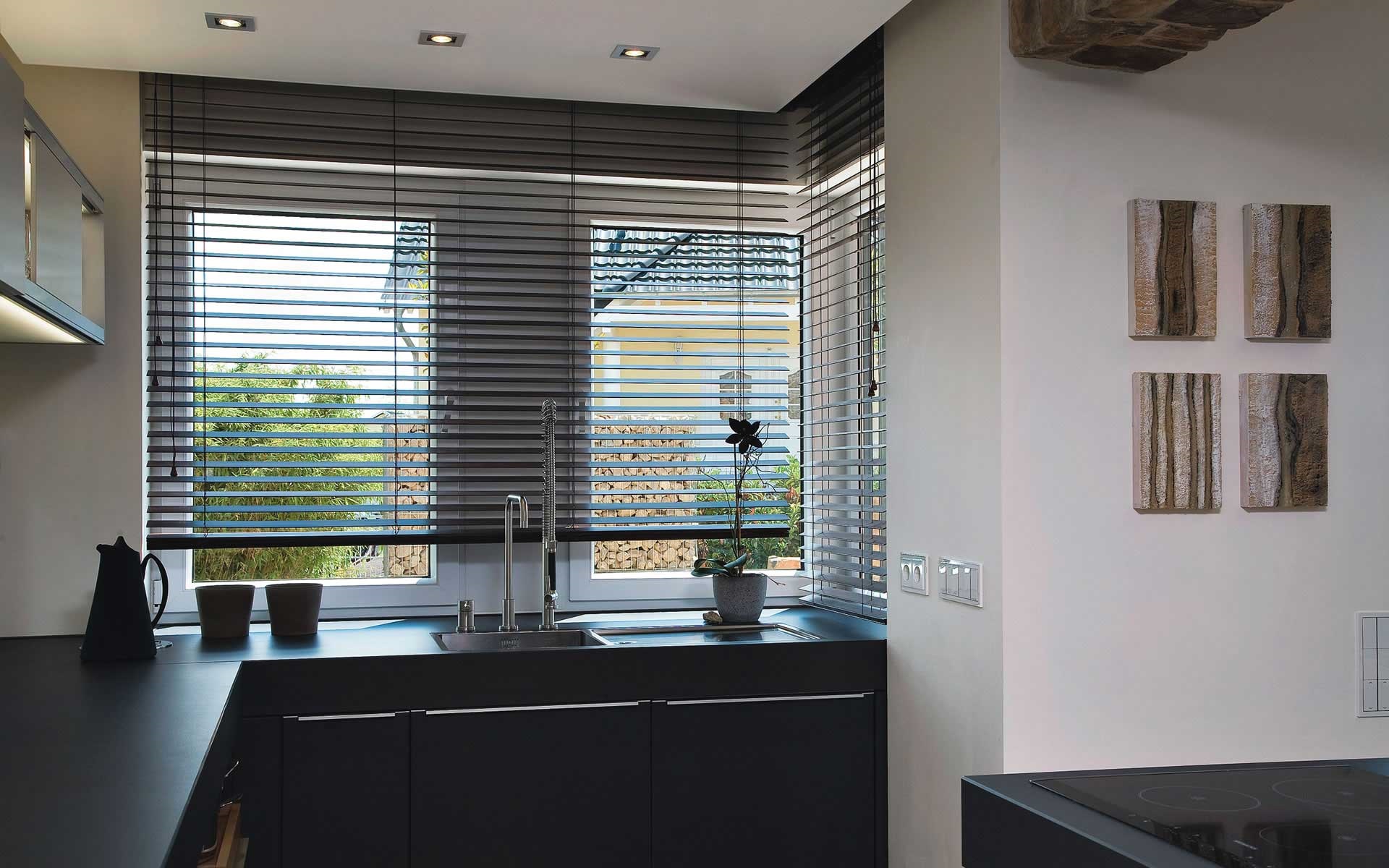 Дополнением к жалюзи и ролетам могут служить итальянские или французские шторы, многослойные вуали или строгие полотна портьер.