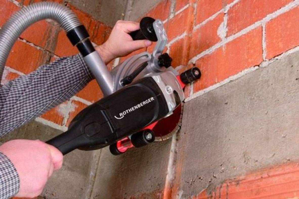 Поскольку специальный инструмент отличается высокой ценой (от 5,5 тыс. руб. за бюджетные модели китайского производства), то для ремонта используют комплект из угловой шлифовальной машинки и перфоратора. После разметки стен прорезают канавки необходимой толщины и глубины, а затем удаляют материал стальной лопаткой, зажатой в патрон перфоратора.
