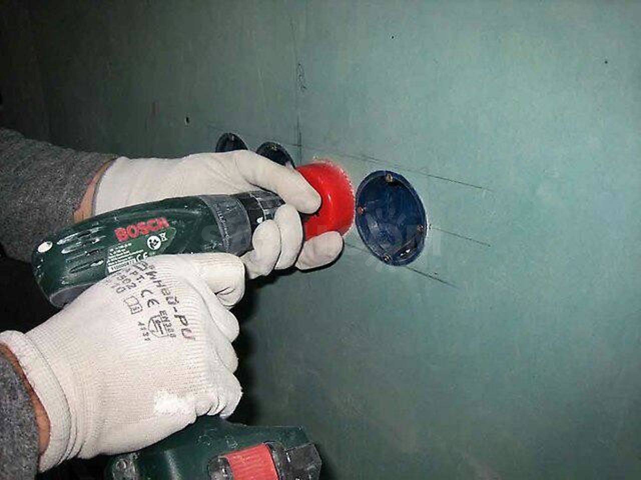 Для монтажа розеток и выключателей в стене при помощи электроинструмента проделываются посадочные места.