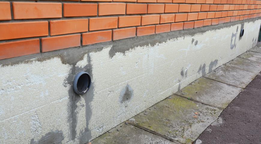 Пространство под полом первого этажа обязательно должно вентилироваться, в противном случае скапливающаяся там влага начнет постепенно разрушать бетонные и деревянные конструкции. По действующим строительным нормам ленточный фундамент обязательно должен иметь отверстия для сквозного проветривания, называемые в народе «продухами» или «продушинами». Очень часто можно увидеть неправильно выполненные продухи: их мало, и они сделаны из тонких труб, поэтому не обеспечивают достаточной циркуляции воздуха. Помните: общая площадь продухов должна составлять не менее 1/400 от площади подполья, а площадь каждого из них не может быть меньше 0,05 м2. Их располагают на расстоянии не более 90 см от углов, при этом продухи, находящиеся на разных сторонах фундамента, должны быть расположены друг напротив друга. В радоноопасных районах общая площадь продухов должна быть не менее 1/100 от площади подполья.