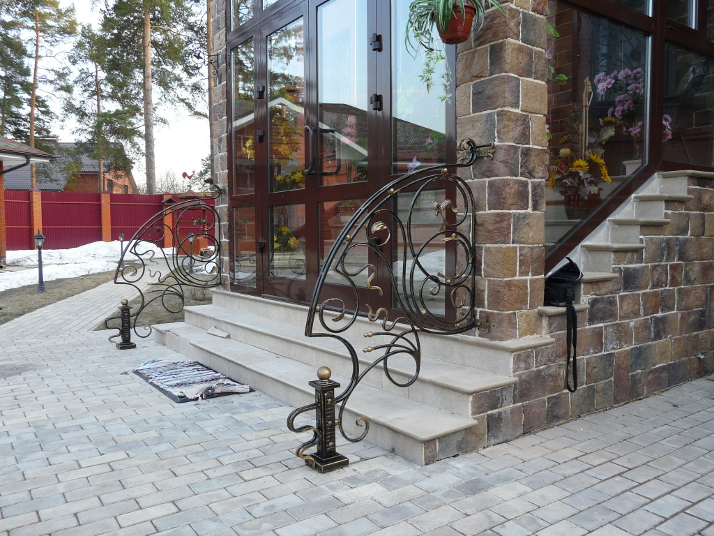 | Металлические лестницы для крыльца идеально прочны и имеют большое количество вариаций в декоративном оформлении за счет художественной ковки. Однако они имеют и явные недостатки: