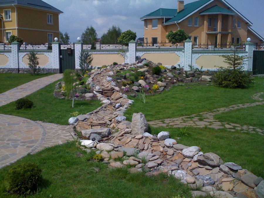 - Сухой ручеек из камня — так называют все объекты, построенные с использованием булыжника.