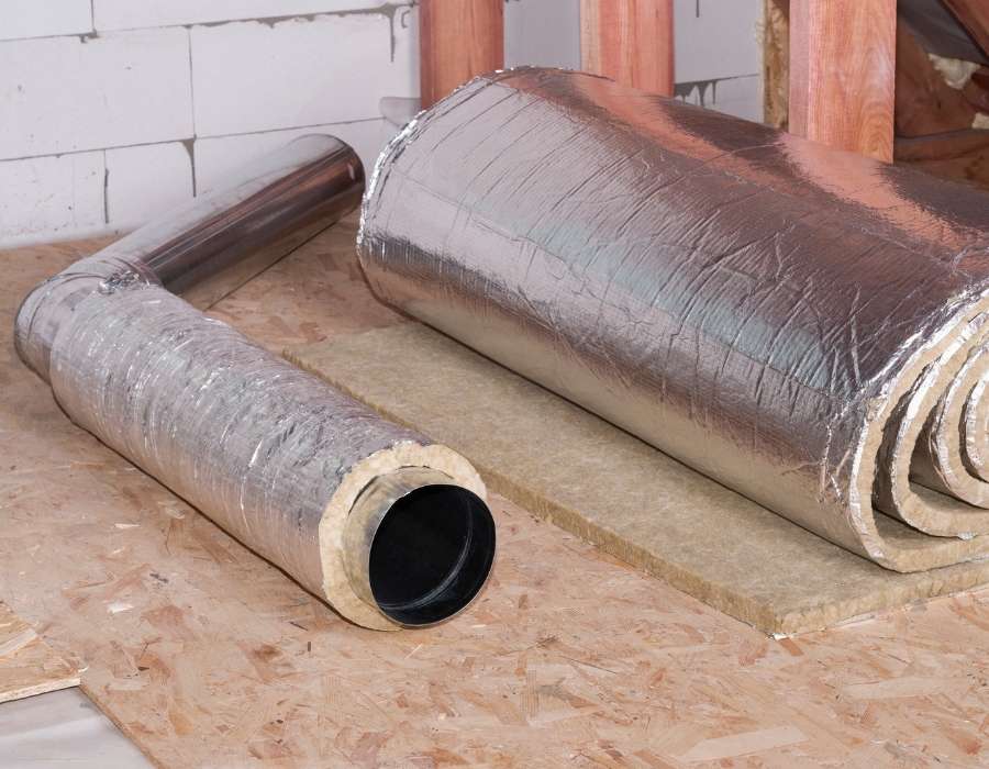Каменная вата выполняет две функции — утепляет воздуховод и устраняет шумность