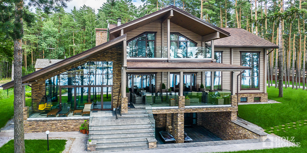 Любые из перечисленных видов свай могут использоваться для возведения свайно-ростверкового фундамента. Такой тип основания отличается высочайшим уровнем прочности, долговечностью и устойчивостью к внешним факторам. Большинство проектов компании Holz House возводятся именно на свайно-ростверковом основании. Ростверки, применяемые для связывания свай воедино, различаются между собой по высоте. Высокий ростверк чаще используют для деревянных построек, чтобы нижняя часть дома лучше проветривалась. Средний по высоте ростверк упрощает технологию утепления здания. Низкий делается ниже уровня земли и предполагает внушительный объем земельных работ при возведении.