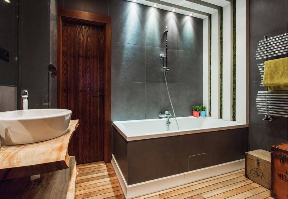 Ванная – это именно та комната, которая существенно отличается от всех остальных. Вместо мебели здесь сантехника, а отделочные материалы, как правило, водостойкие. В основном это глянцевые гладкие поверхности (кафель, стекло, металл). Для какого-либо декора и дополнительных аксессуаров здесь бывает сложно найти место, а благодаря грамотному освещению можно сделать ванную действительно уютной и по-домашнему атмосферной.