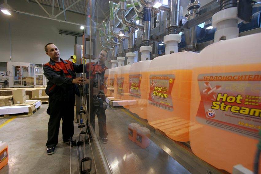 Часто запрет на применение этой вязкой жидкости накладывают компании, производство которых основывается на металлах, плохо реагирующих на химический состав антифриза.