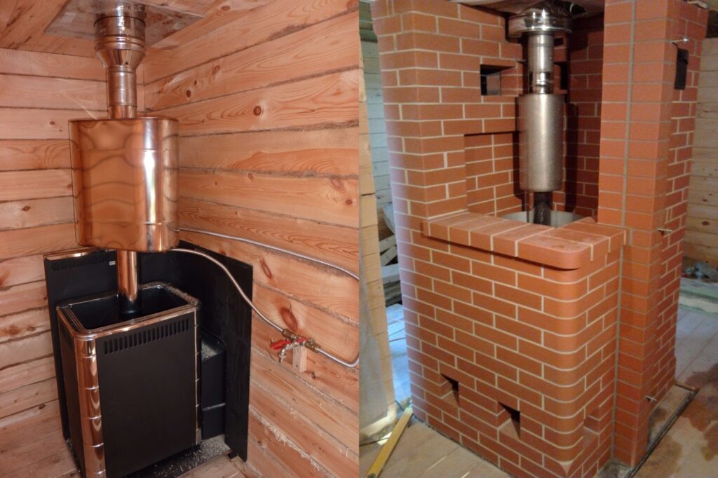 - Теплообменник для печи устанавливается в смежном с парилкой помещении.
