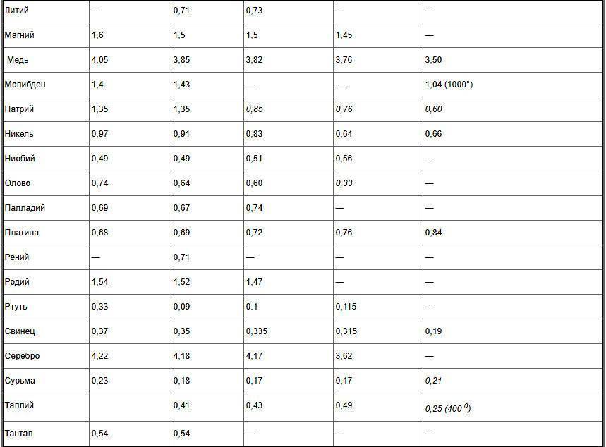 Теплопроводность металлов не менее важна в строительстве, например, при выборе радиаторов отопления. Также без подобных значений не обойтись при сварке ответственных конструкций, производстве полупроводников и различных изоляторов. Ниже приведены сравнительные таблицы проводимости тепла различных металлов.