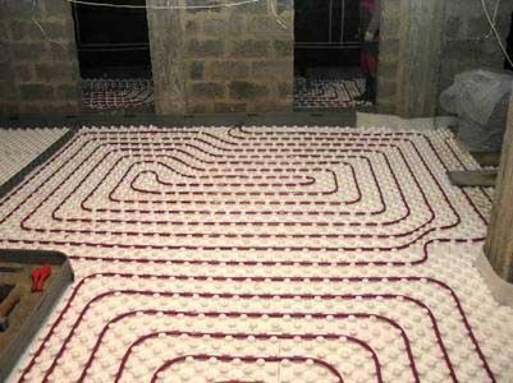- В фигурных плитах полистирола, предназначенного специально для укладки трубопровода теплого пола.