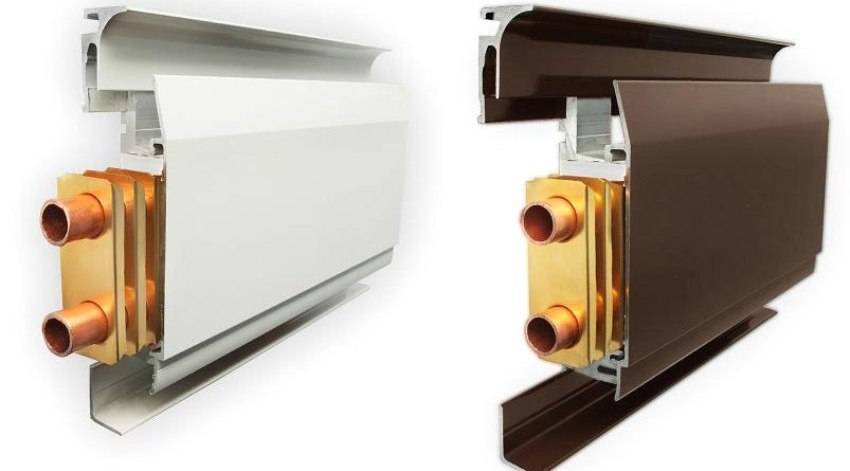 Имеет теплый плинтус и явный недостаток – высокую цену. Связано это с тем, что для увеличения теплоотдачи используется медь и алюминий, а стоят они немало.