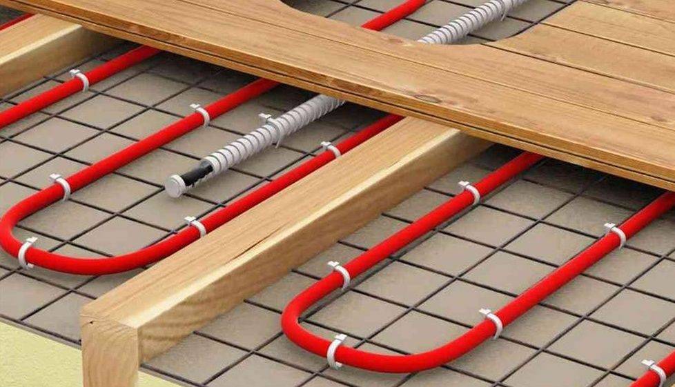 Если вы хотите сделать тёплый пол поверх старого деревянного покрытия, то можете сделать углубления под трубы прямо в нём, как это показано на фото снизу.