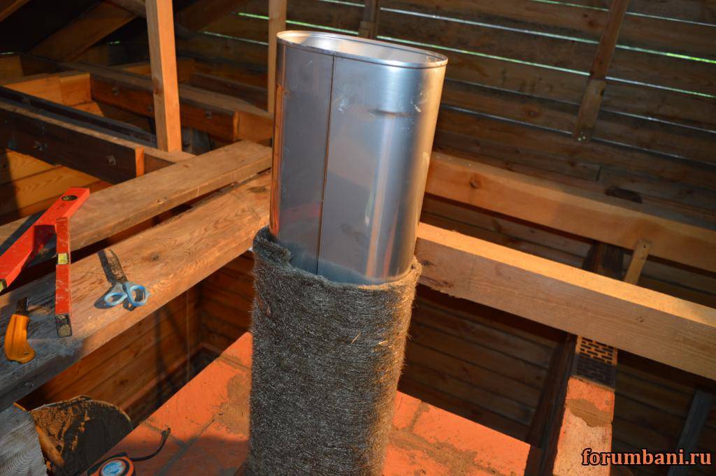 Изолировать печную трубу в парилке можно с применением следующих вариантов: