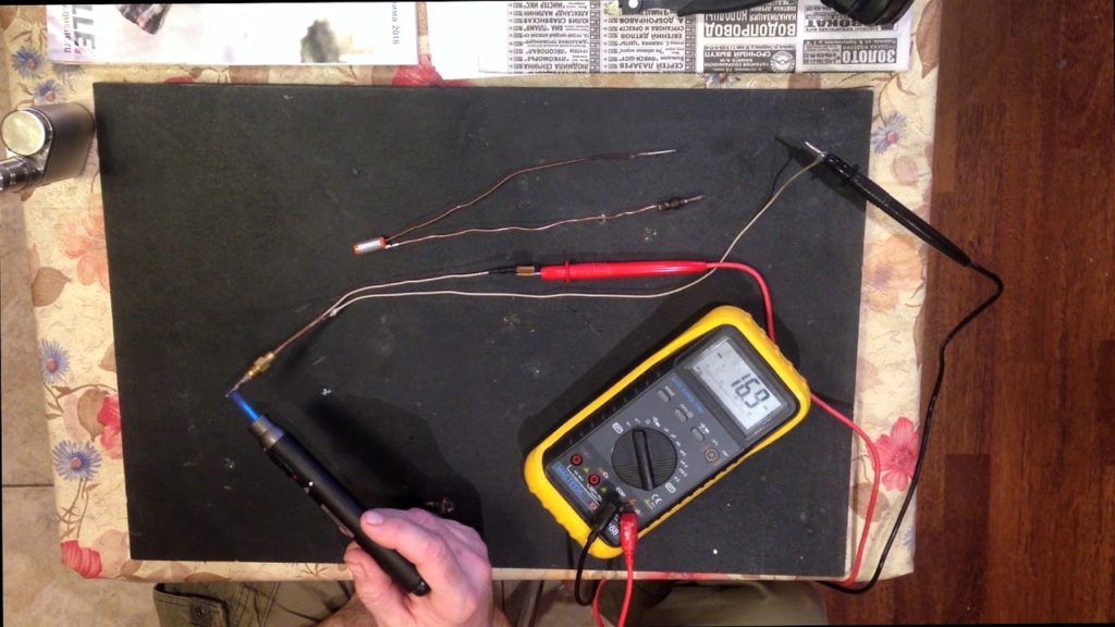 Чтобы проверить её работоспособность, достаточно соединить один конец с мультиметром — измерительным датчиком, а другой конец нагреть, используя газовую горелку либо зажигалку.