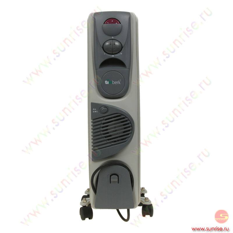 Масляный отопитель в черном или белом корпусе с ручкой для перемещения по комнате. Благодаря 7 секциям качественно отапливает пространство до 20 квадратов. Мощность составляет 1,5 кВт. Термостат выключается в режиме перегрева или при наборе нужной температуры.