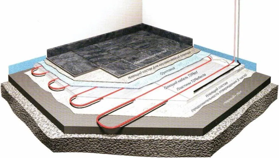 - Квадратный кафель со сторонами 20-30 см. После прижатия под плиткой должен остаться слой до 3,5 мм.