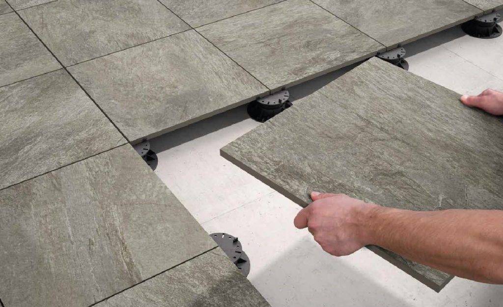 При устройстве плитки, следует учитывать большой собственный вес и производить работы вдвоём.