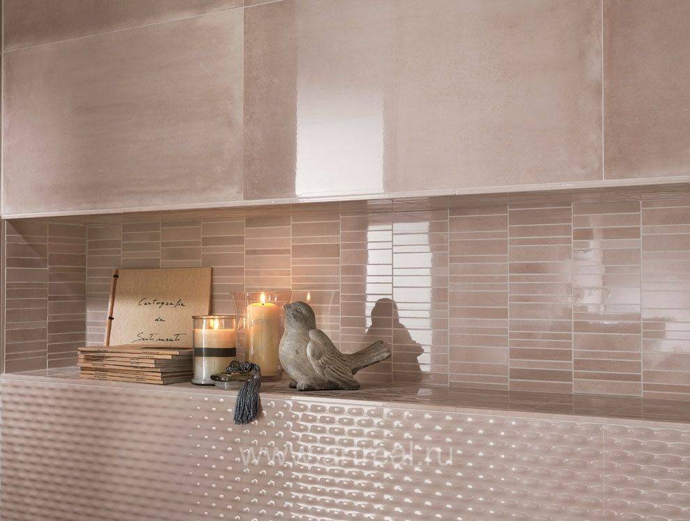 На фото: еще недавно изготовить керамогранит с рельефной глянцевой поверхностью было технологически невозможно. Отделка ниши керамогранитом Fap Frame.