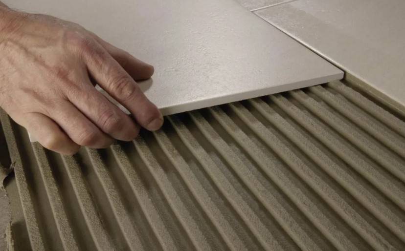 Минимальная толщина клея, наносимого при укладке плитки, рассчитывается индивидуально в зависимости от формата кафеля
