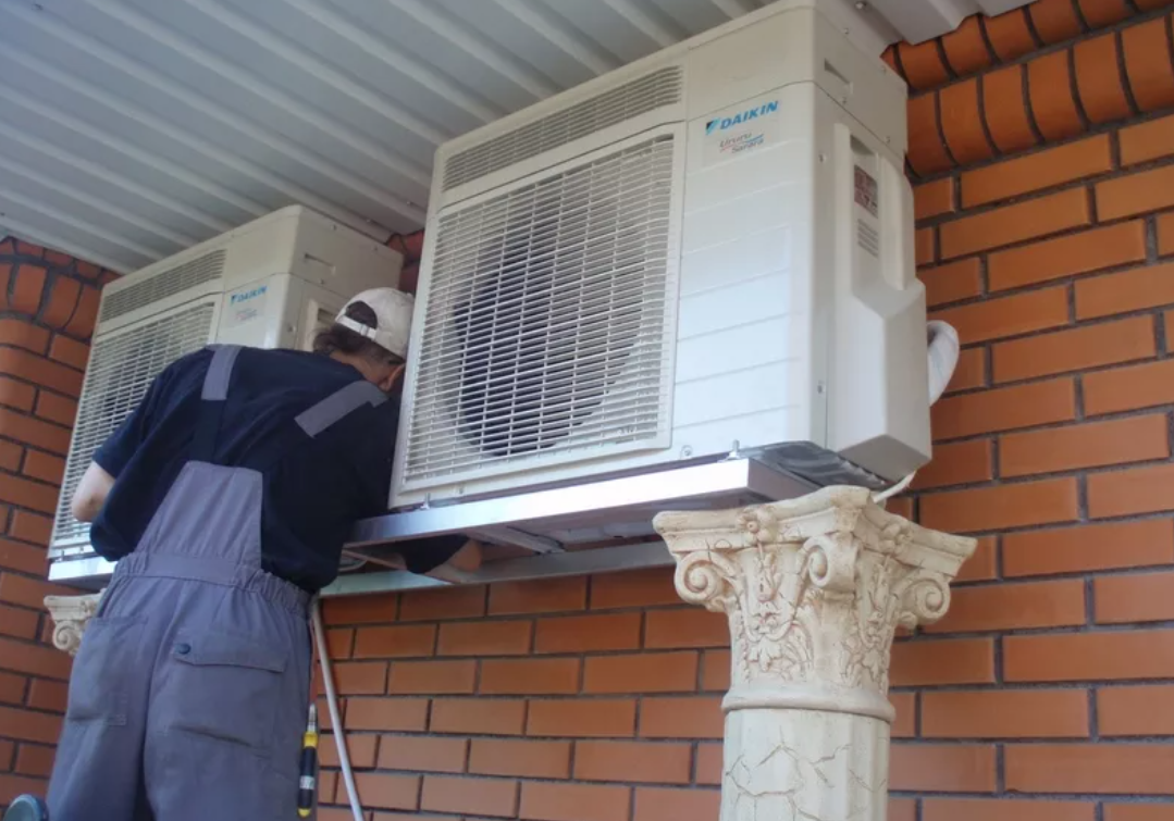 Первым устанавливают наружный блок, а затем монтируют систему внутри помещения